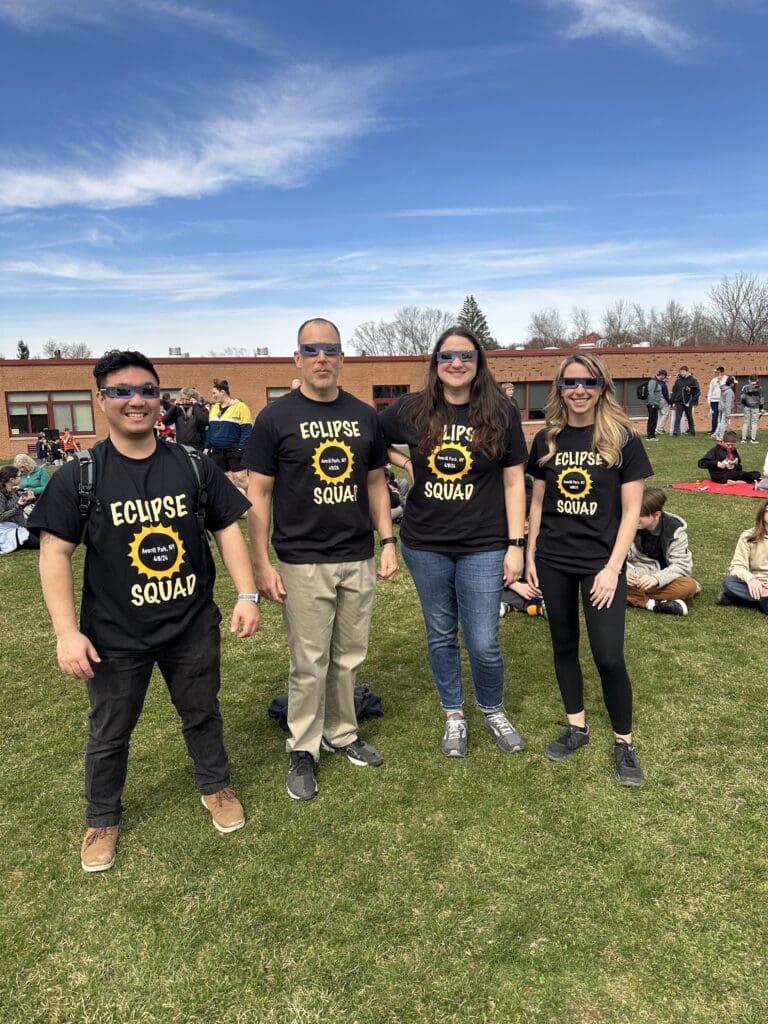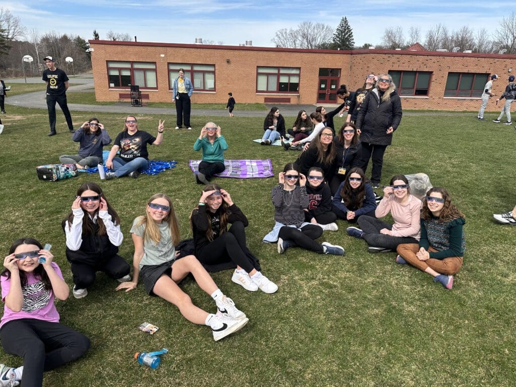 On April 8, 2024, AMS had a great turn out for their Eclipse Viewing Party on Monday afternoon. Nearly 300 students participated, staying after school to learn about the eclipse with their science teachers, enjoy snacks and of course view the eclipse as it happened on the back fields.