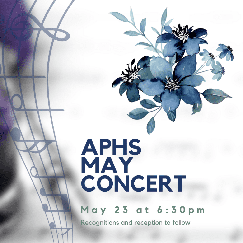 APHS 2024 Spring Concert Info, Livestream May 22, 2024 The APHS Spring Concert is happening on Thursday, May 23 at 6:30 PM. A digital program can be viewed here. If you’re unable to make it, you can watch the live stream here.
