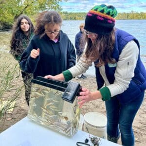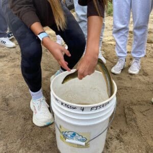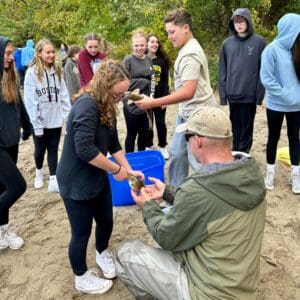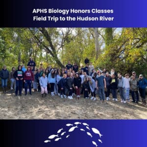 The Honors Biology classes at APHS participated in “Day in the Life of the Hudson” on Oct. 10, 2024, joining 5,000 other students along the Hudson from Battery Park to the Troy Dam, collecting data for the New York State Department of Environmental Conservation. Seining for fish, taking water chemistry readings, core and sediment samples, touching eels, and braving the chilly wind were all highlights of the day!