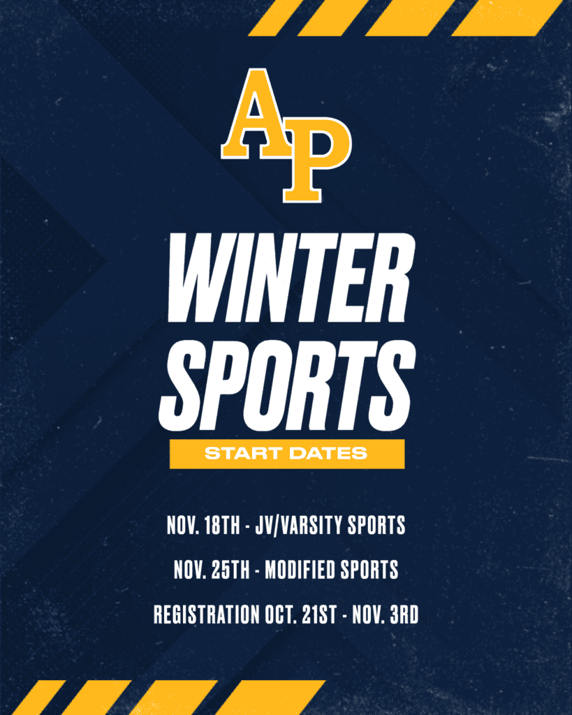 Please note, for 7th/8th grade student-athletes interested in going through the Athletic Placement Process (APP) to participate in a JV or varsity spring sport, only those student-athletes previously personally asked by the head varsity coach will be allowed to go through the process. Once registered you will be emailed a permission slip and a physical maturity form to be completed by your family physician. Please return the permission slip to Dylan Larkin (larkind@apcsd.org) and the physical maturity form to Rebecca Everett (everettr@apcsd.org) by Sunday, November 3rd. If your son/daughter is not registered and/or the permission slip is not returned by the deadline, then your child will not be allowed to go through the APP and will only be allowed to play at the modified level.