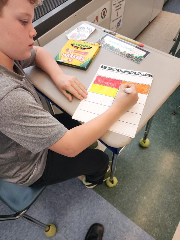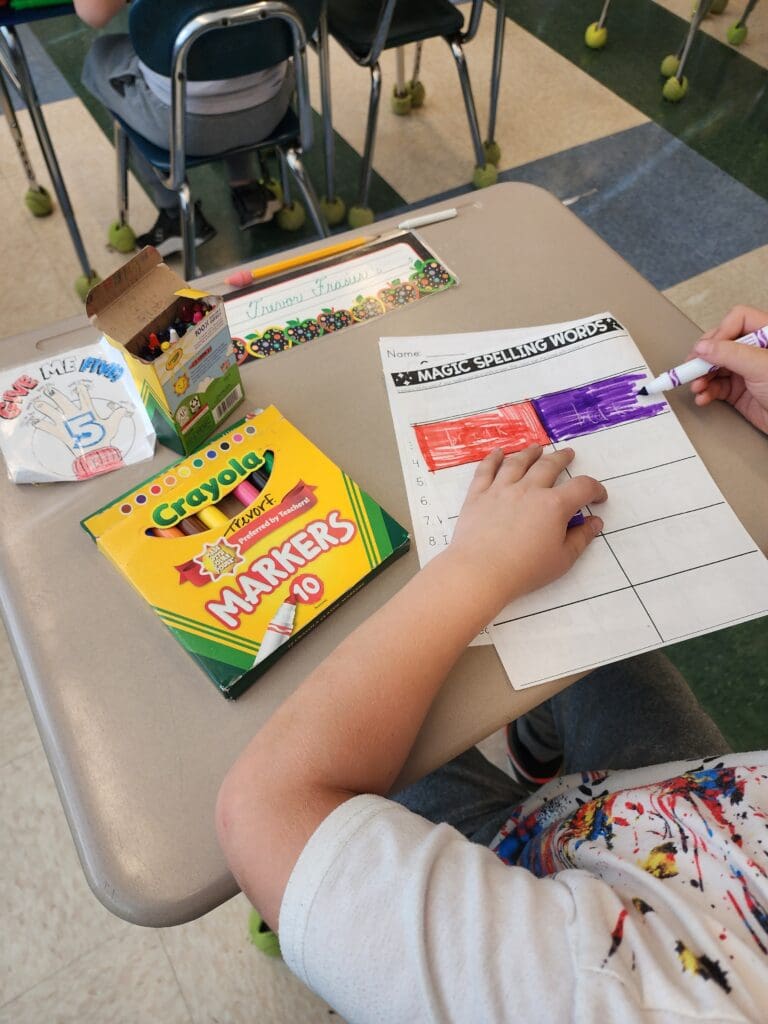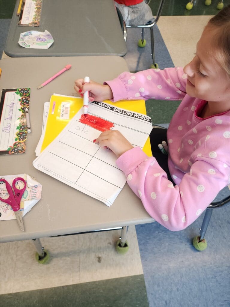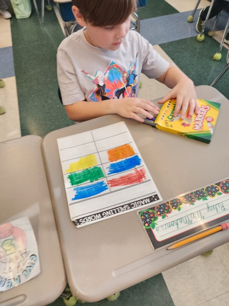Mrs. Guyer’s class at WSL used a white crayon to write words and then a marker to color over the white crayon as students learned homophones! #AP_EveryStudentEveryDay