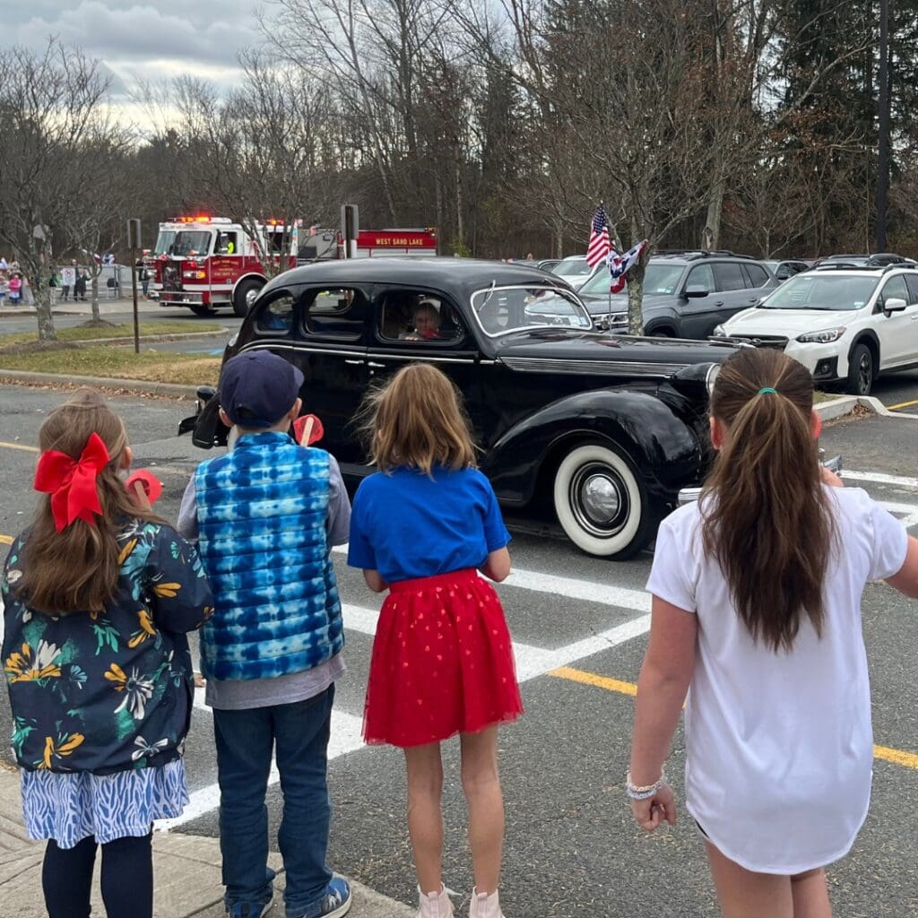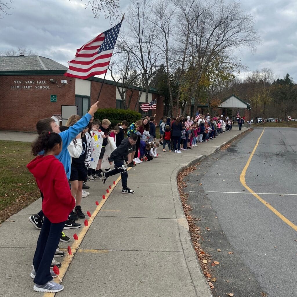 West Sand Lake Elementary School held its 4th annual Veterans Day Parade on Nov. 7, 2024! The assembly and parade were coordinated by WSL’s Character Education Committee and attended by approximately 20 veterans. Students in grades K-5 sang patriotic songs and cheered on our veterans as they drove through the campus.