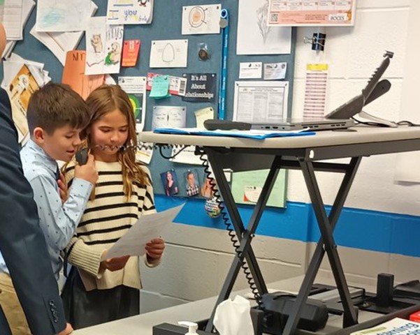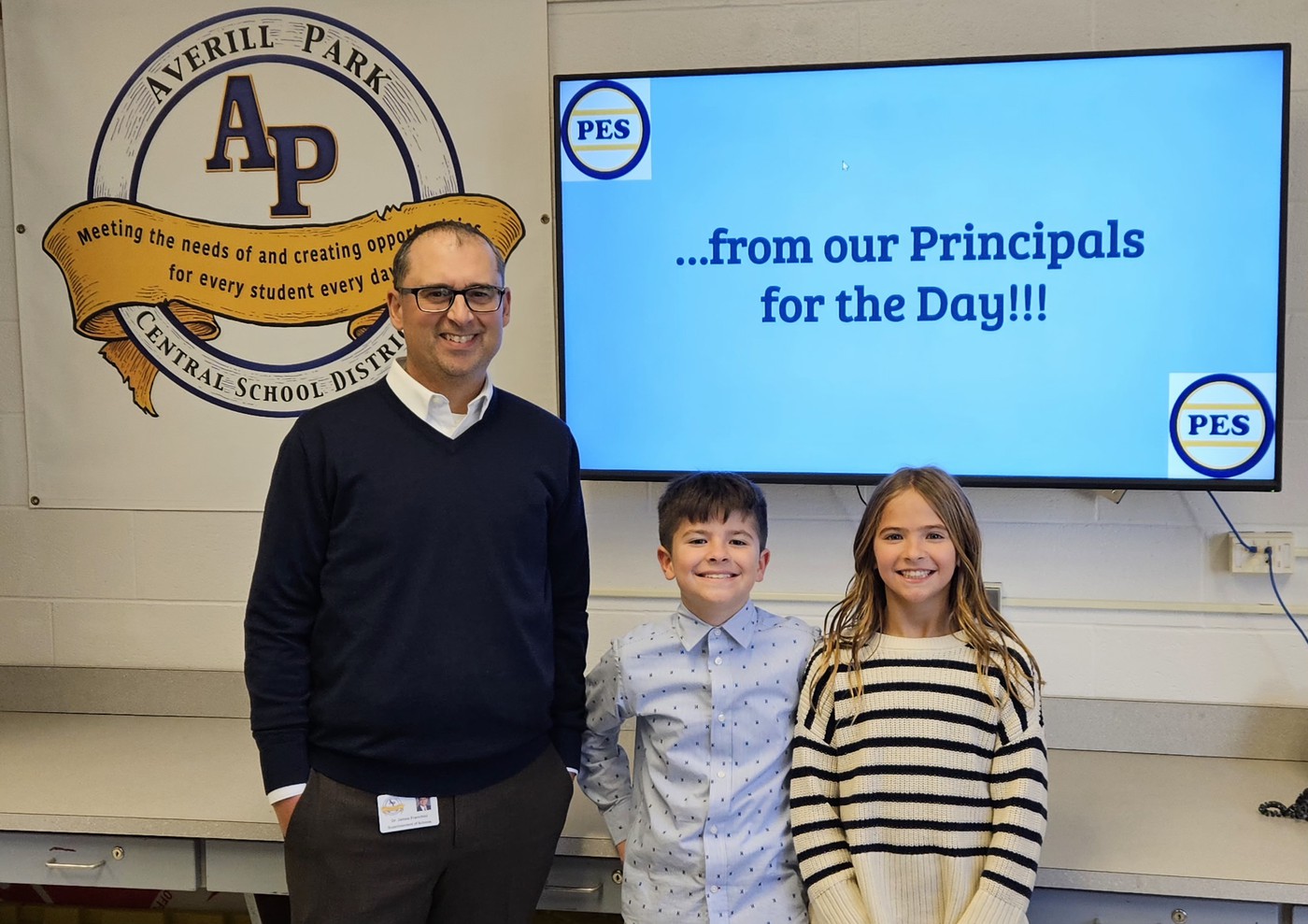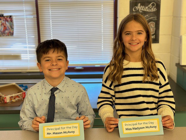 As top fundraisers for this year’s Fun Run, Madyson and Mason McAvoy were Principals of the Day on Nov. 13, 2024 at PES! They had a full schedule of principal duties including greeting fellow students at arrival, making morning and end-of-day announcements, having meetings with staff to review the building’s sensory space and enjoying lunch with SRO Nikles and friends.
