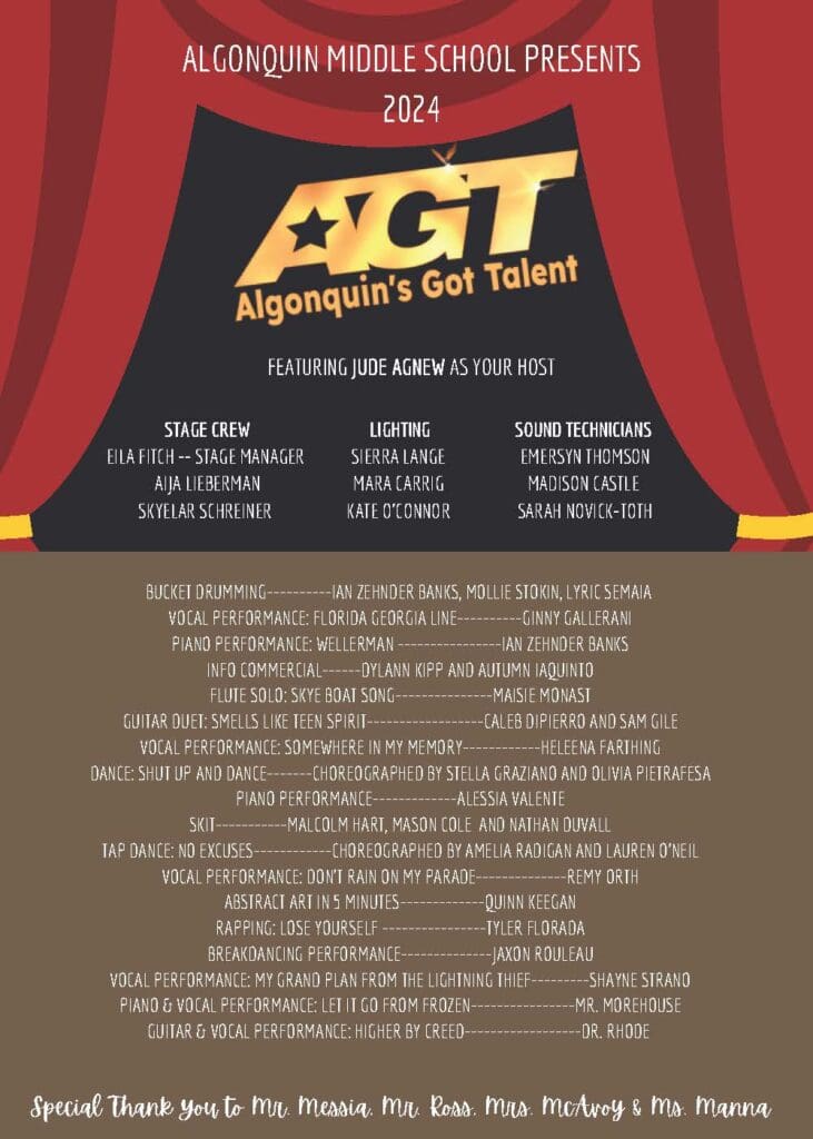 What a great time was had at the first-ever Algonquin’s Got Talent on Nov. 21, 2024! Those in attendance enjoyed 15 student and teacher acts that stole the show. AMS raised $1,243 dollars for its school pantry program! Way to, AMS! #AP_EveryStudentEveryDay