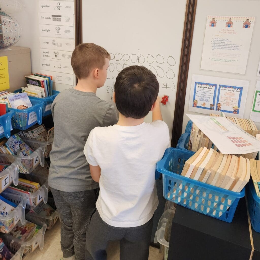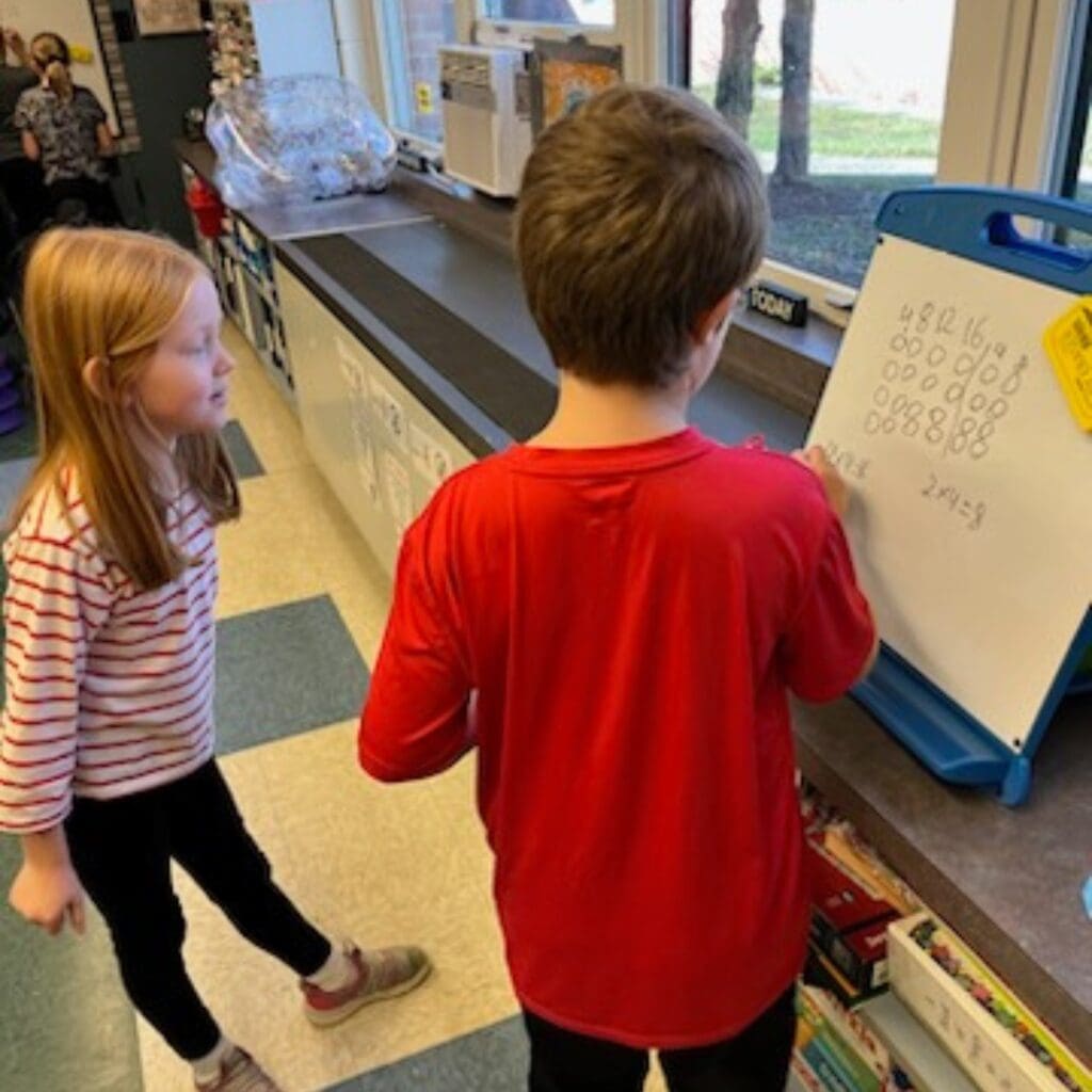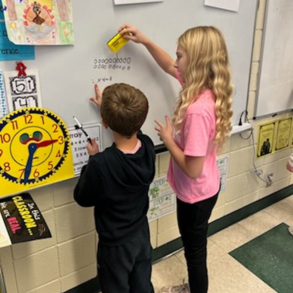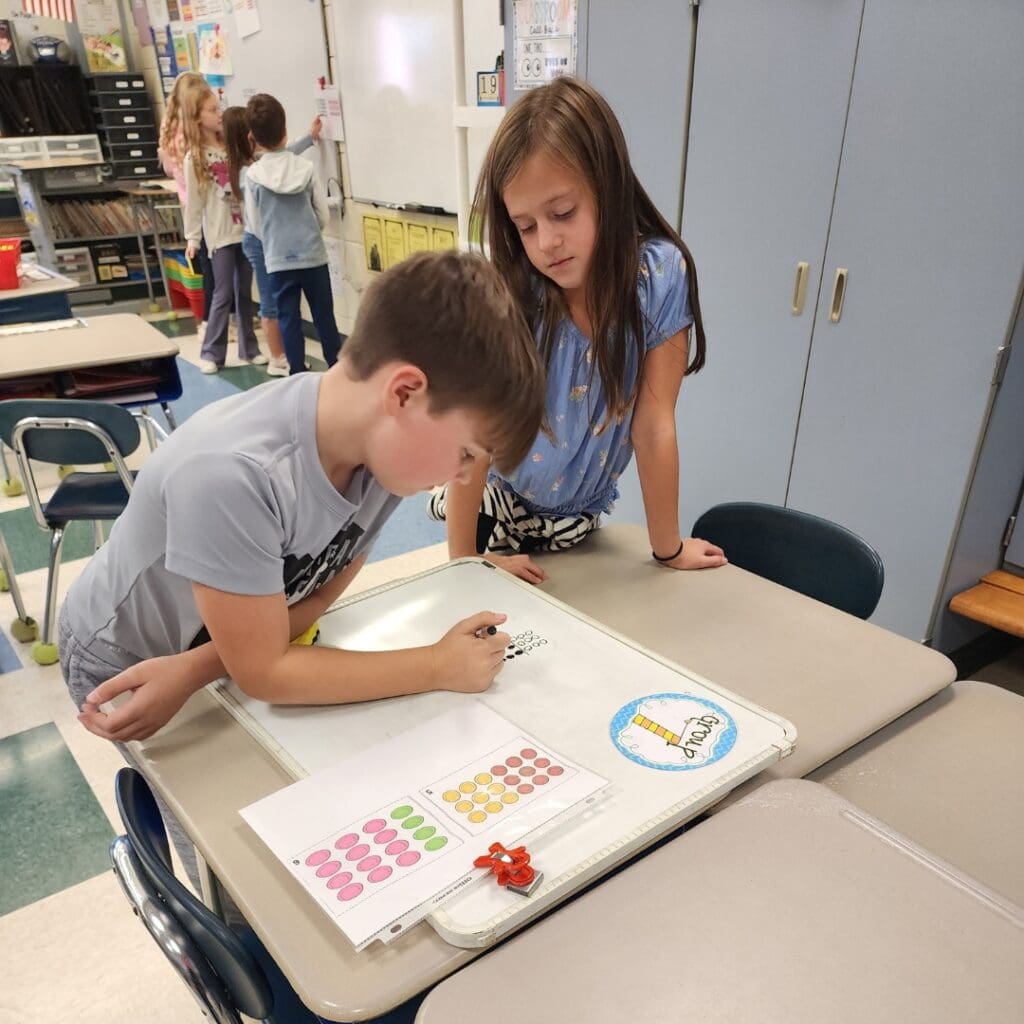 Students in Mrs. Guyer’s 3rd grade class at WSL recently worked in pairs to solve math multiplication problems using the distributive property! #AP_EveryStudentEveryDay