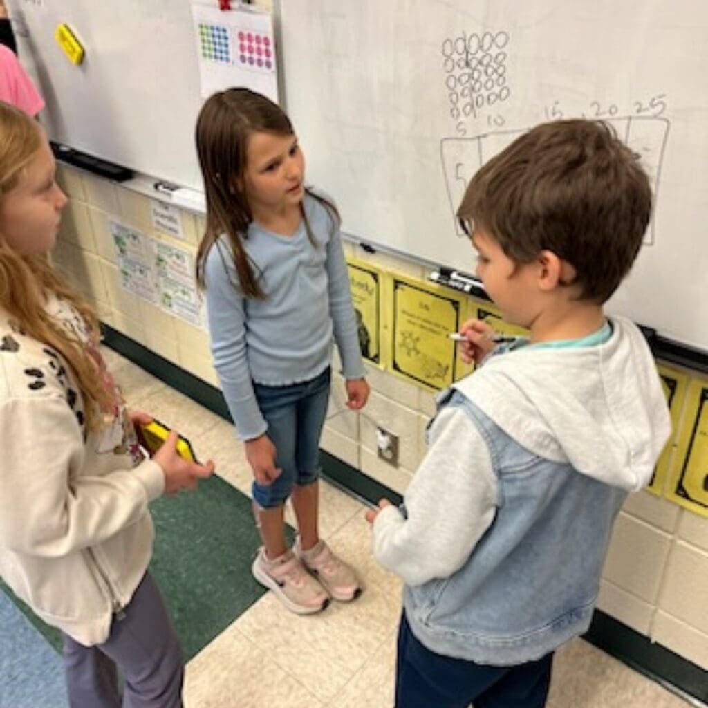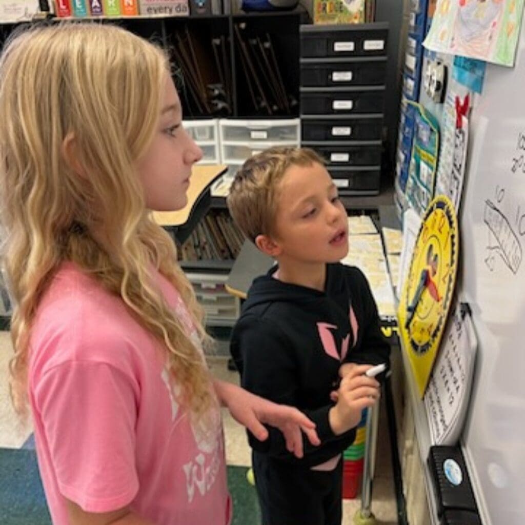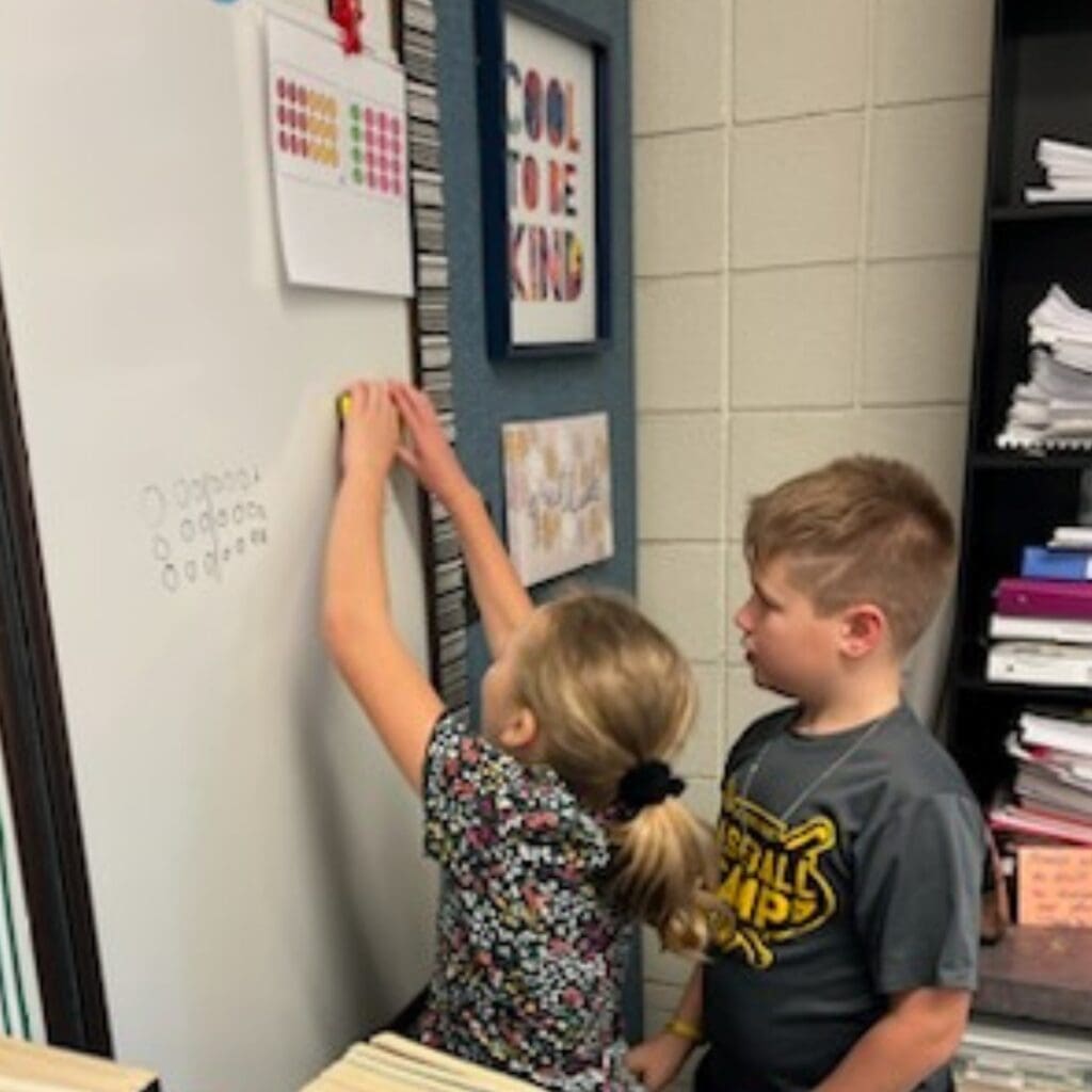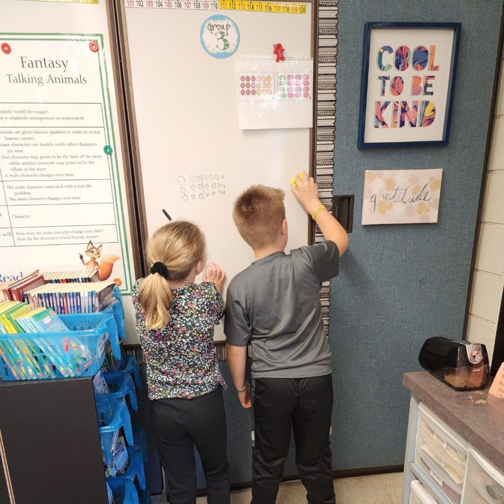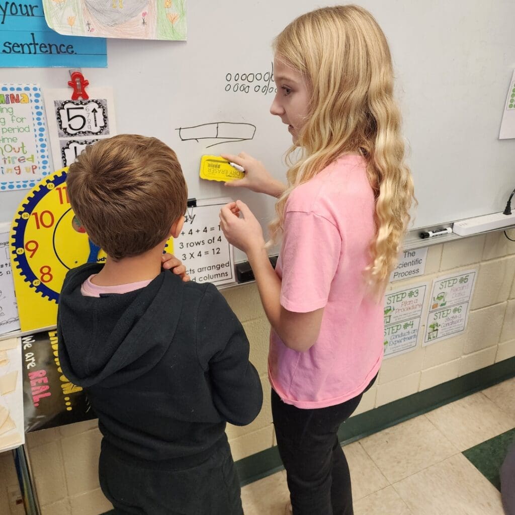 Students in Mrs. Guyer’s 3rd grade class at WSL recently worked in pairs to solve math multiplication problems using the distributive property! #AP_EveryStudentEveryDay