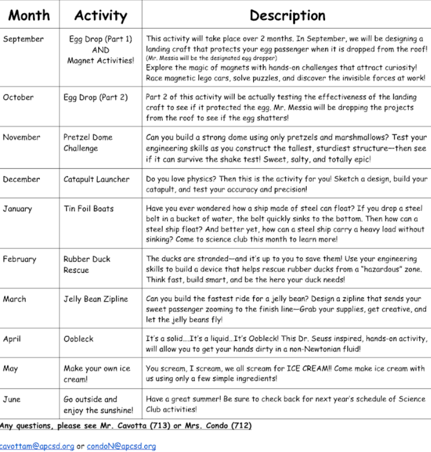 Please fill out the Science Club Participant form if you are planning to attend the OCTOBER science club meeting.