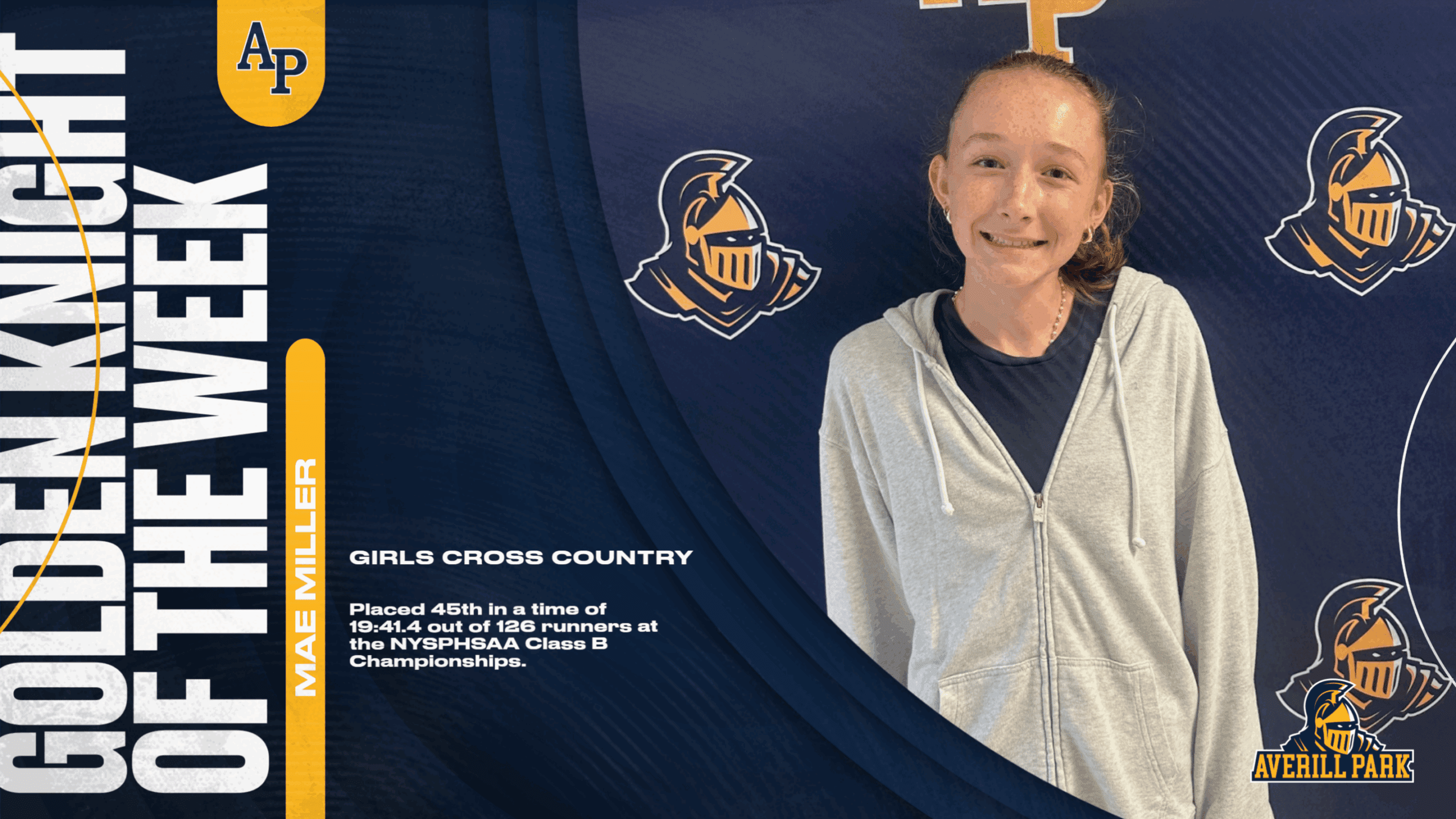 Averill Park Central School District has named its Golden Knights of the Week and recognized two standout cross-country athletes. Lucas Brown placed 66th in 16:59.8 out of 126 runners at the NYSPHSAA Class B Championships, while Mae Miller finished 45th in 19:41.4 in a field of 126 athletes at the same meet. The District congratulates both students for their strong performances and dedication throughout the season. #AP_EveryStudentEveryDay