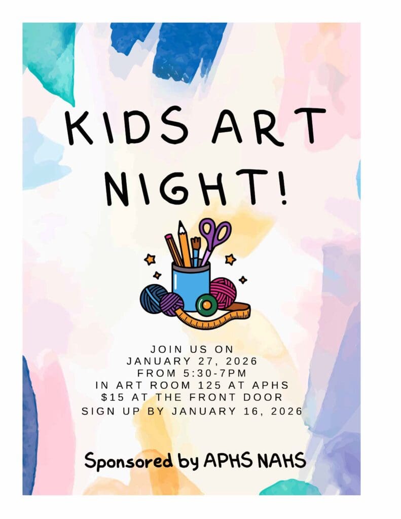 AP families of students in grades 2–5 are invited to register for Kids Art Night at Averill Park High School.