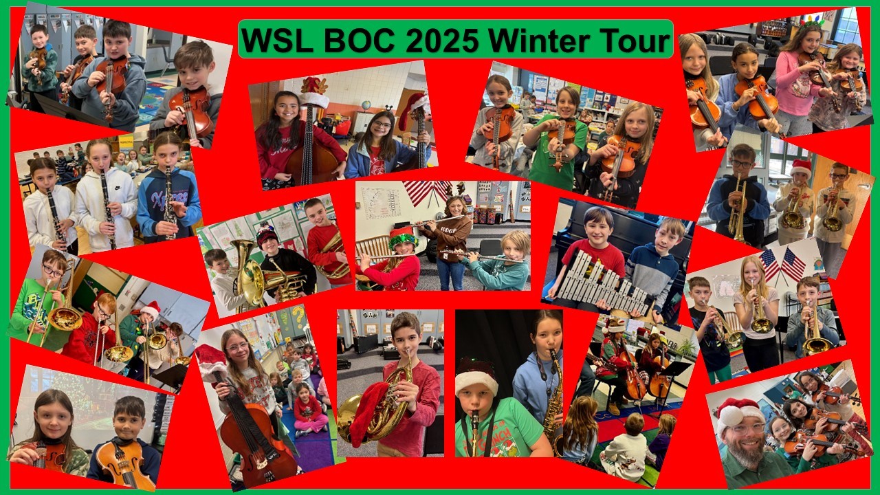 WSL 5th grade musicians and 17 different instruments, spent 3 days on tour visiting former teachers and siblings and spreading holiday cheer! Mr. Riccomini and Principal Mrs. Rosher also played in a traveling Quartet with students. #AP_EveryStudentEveryDay