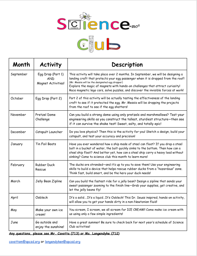 If you are planning to attend this month, please fill out the January science club meeting form.