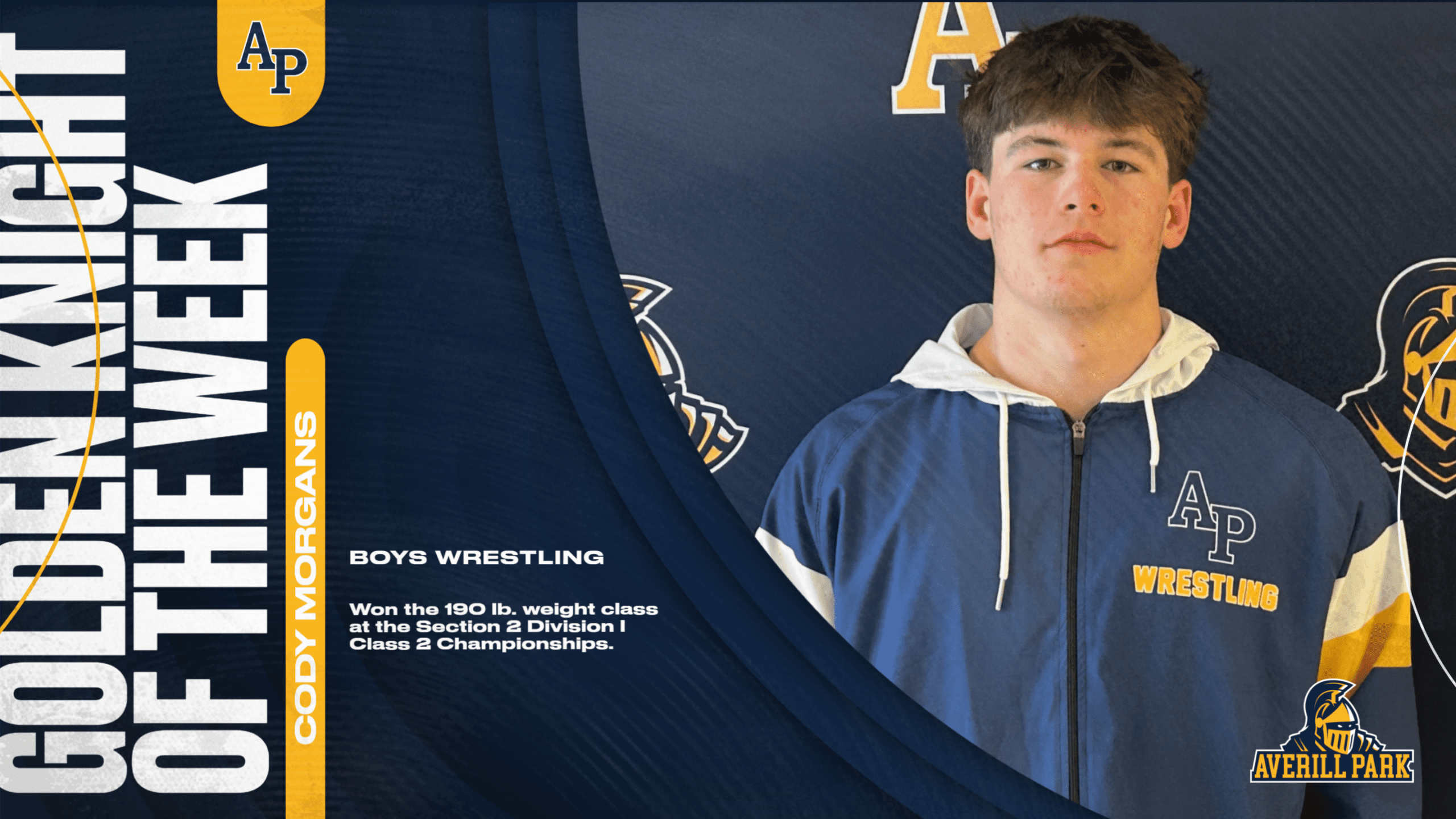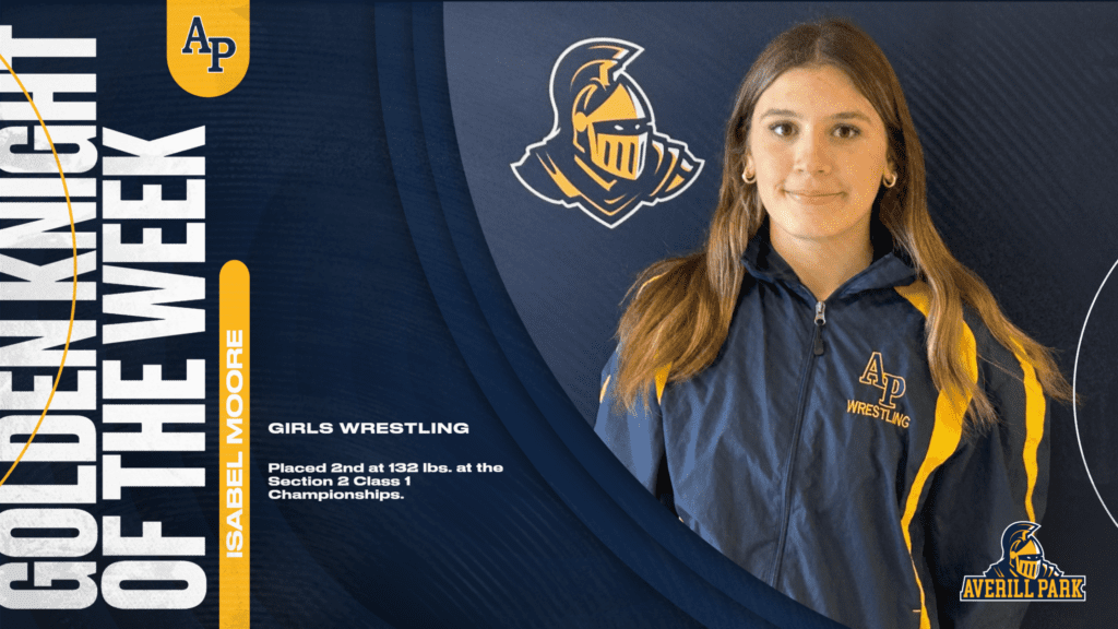 Congratulations to this week’s Golden Knights of the Week. Cody Morgans captured the 190-pound weight class title at the Section 2 Division I Class 2 Championships in boys wrestling. Isabel Moore earned a second-place finish at 132 pounds at the Section 2 Class 1 Championships in girls wrestling. Strong performances that reflect dedication, skill, and hard work.