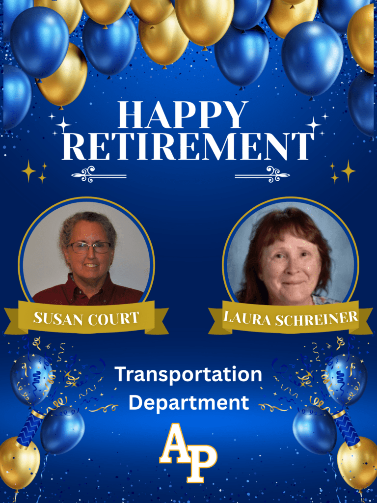 Congratulations to Susan Court and Laura Schreiner on their retirement from the Averill Park CSD Transportation Department. Thank you for your years of dedication and service to our students and school community. We wishyou both a happy, healthy, and well-deserved retirement.