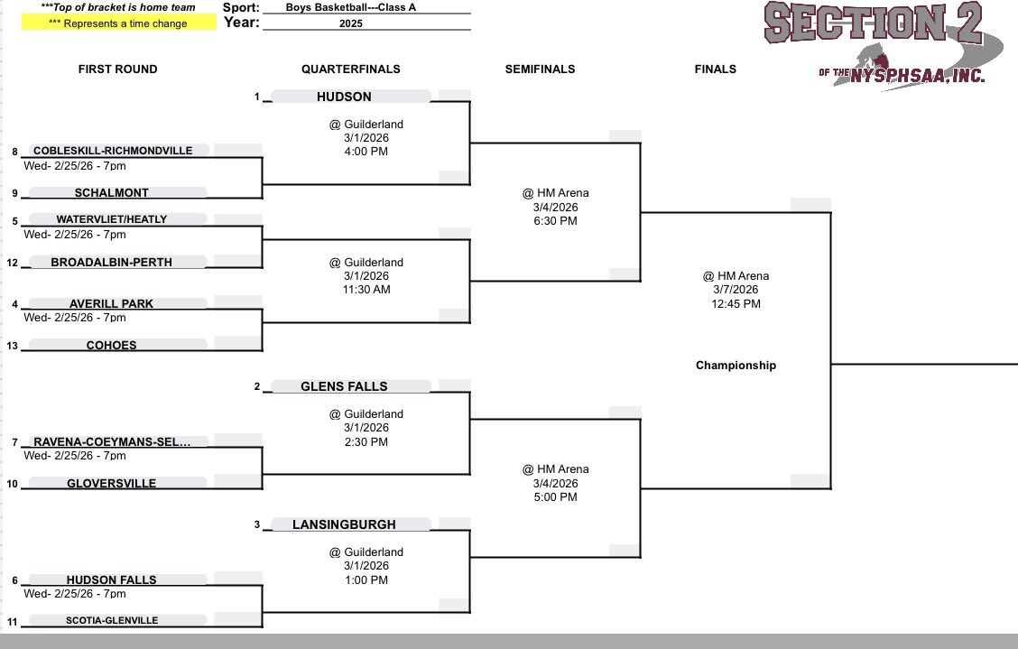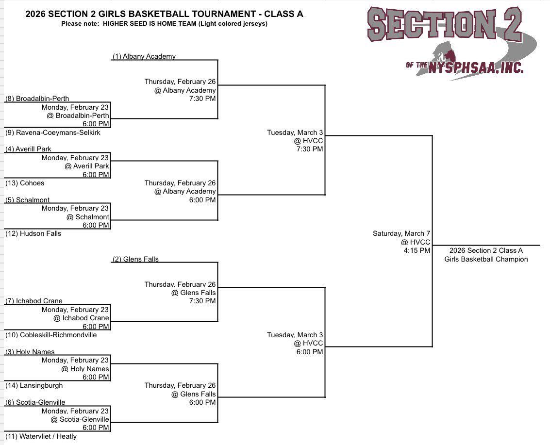 The Section 2, Class A Basketball Tournament brackets have been released.