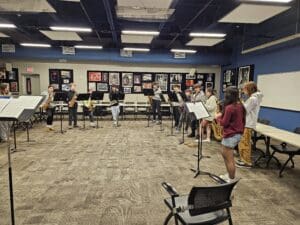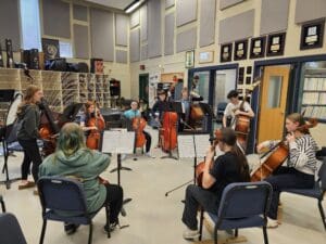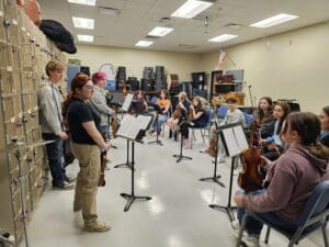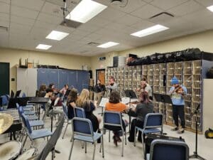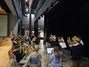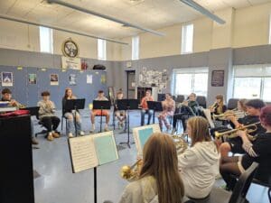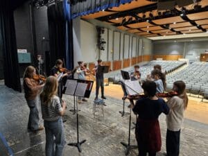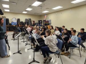 Last week, the 8th grade band and orchestra students visited the high school ensembles, where the students worked with their high school peers in a combined rehearsal, followed by student-led sectionals. Students were engaged and focused, had an opportunity to speak candidly with the high school students about their experiences, and an opportunity to connect on multiple levels. A wonderful way to wrap up “Music In Our Schools” month.